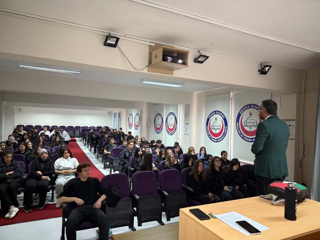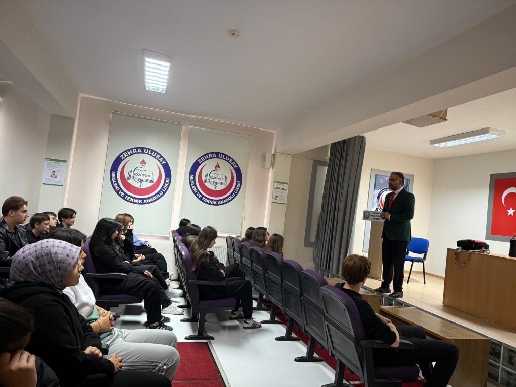 Okul Müdürümüz Mustafa BEKÇİ ve Tarih Dersi Öğretmenimiz Şeyma ERTUĞRUL Rehberliğinde Bakanlığımızın İlgili Yazısı Gereğince Türkiye Yüzyılı Maarif Modeli'nin Erdem-Değer-Eylem Yaklaşımı Esas Alınarak, Öğrencilerimizin Ulusal ve Evrensel Meseleler Karşısında Eleştirel Düşünme Becerisi ve Sorumluluk Bilinci Geliştirmeleri, Aynı Zamanda Birey, Aile, Toplum ve Çevre Yaklaşımının Hayata Geçirilmesi Amacıyla Okulumuz Konferans Salonunda Bir Etkinlik Gerçekleştirildi.